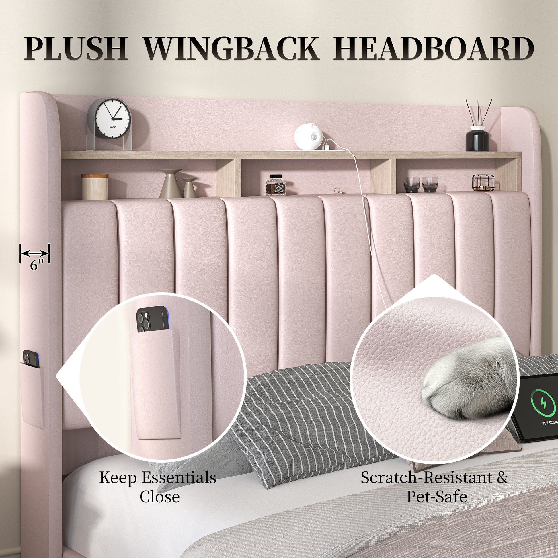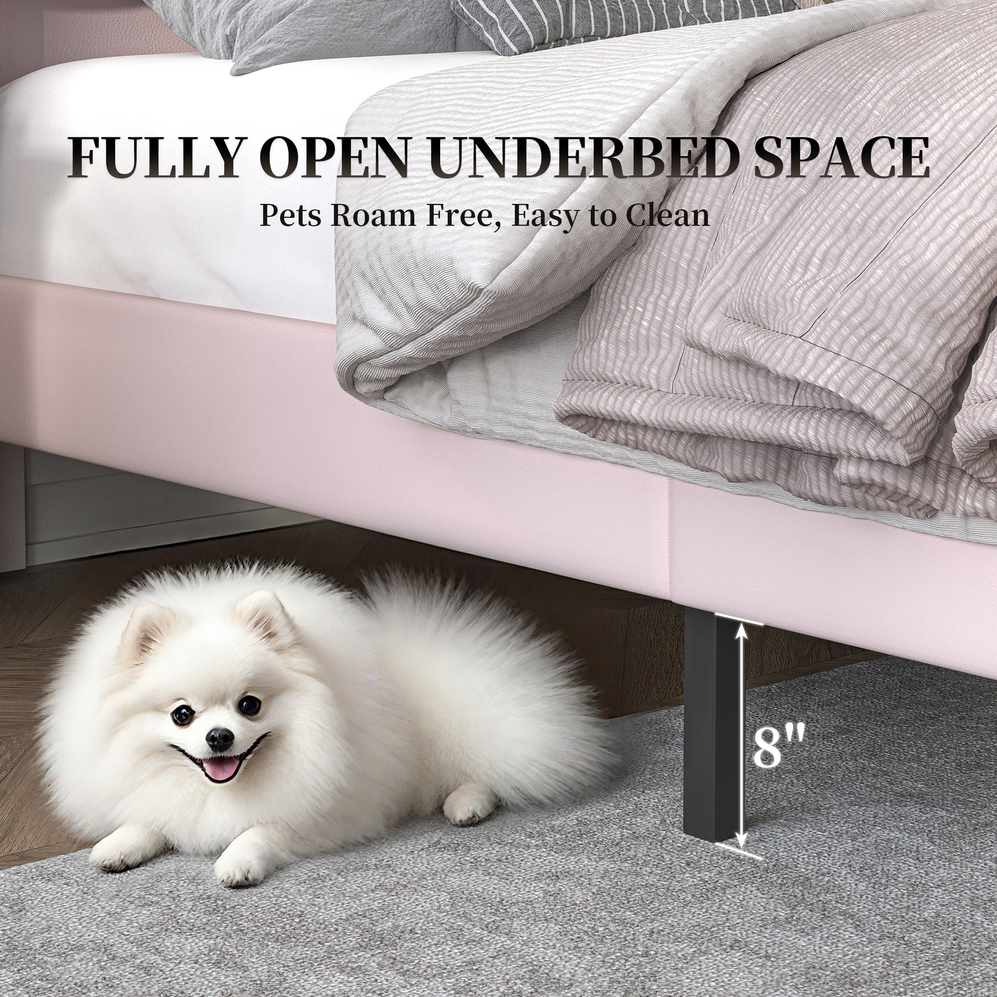 Pet-Friendly Leather Upholstered Headboard: The wingback bed frame features a 52.72" premium scratch-resistant upholstered headboard, providing a sturdy yet comfortable surface for leaning or sitting. The soft, smooth fabric resists pet scratches while offering reliable back support. Compatible with mattresses 8" to 10" thick, this headboard adds a contemporary touch to any bedroom. NOTE: Mattress not included