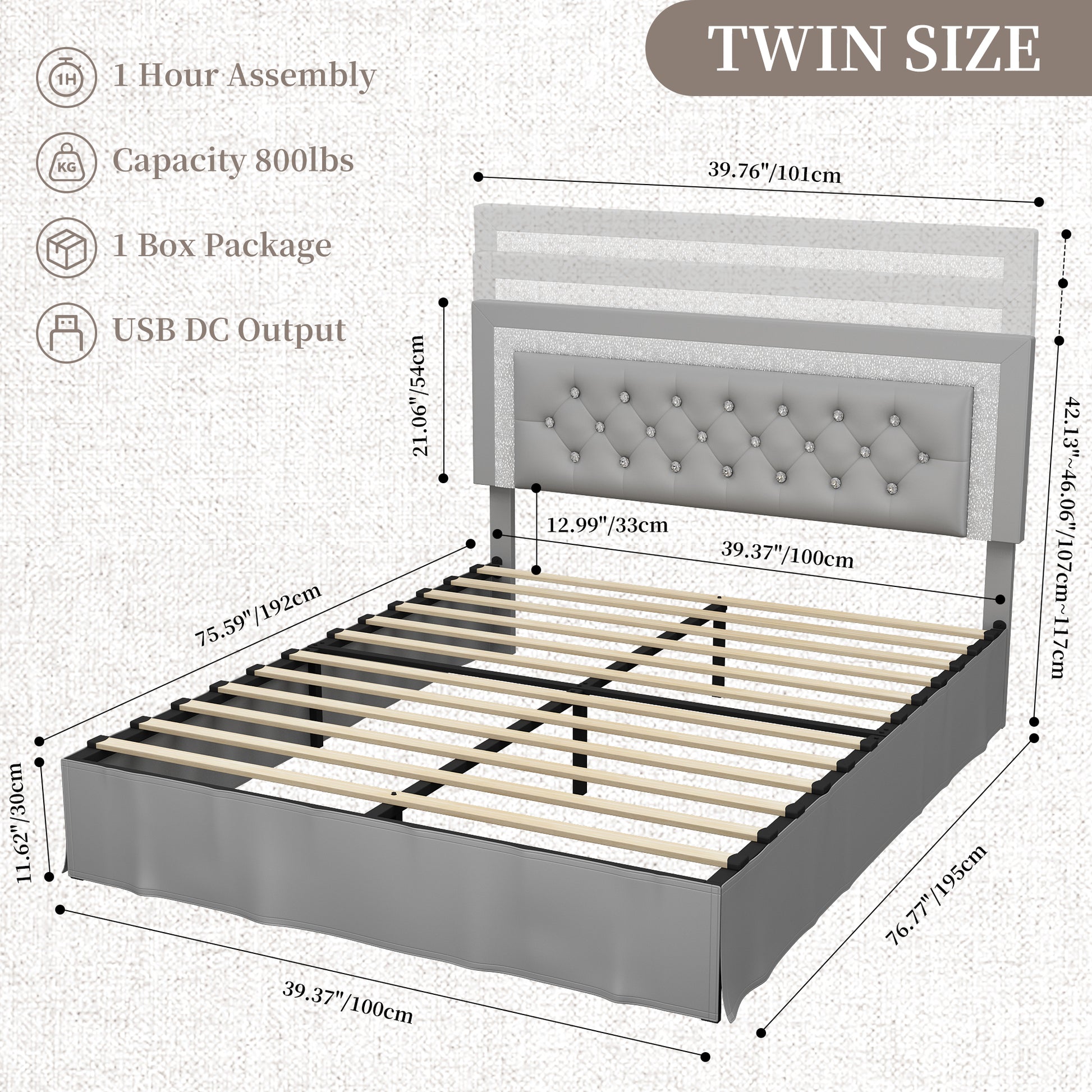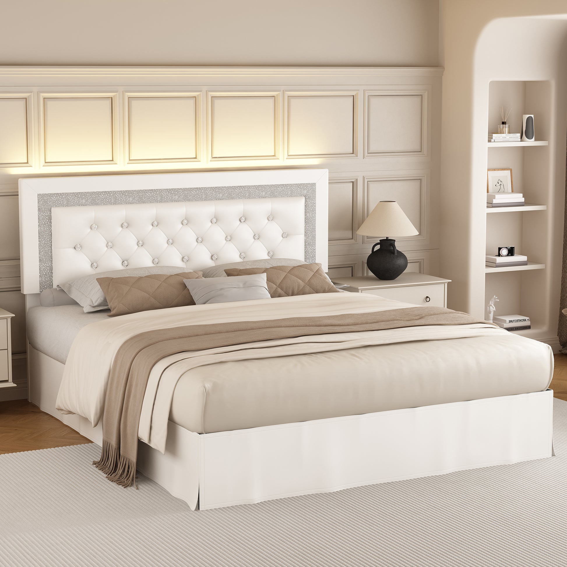 Queen LED Bed Frame with Adjustable Upholstered Headboard – Modern Diamond Tufted Platform Bed, No Box Spring Needed, Easy Assembly, Black / White / Gray | SIBEDS