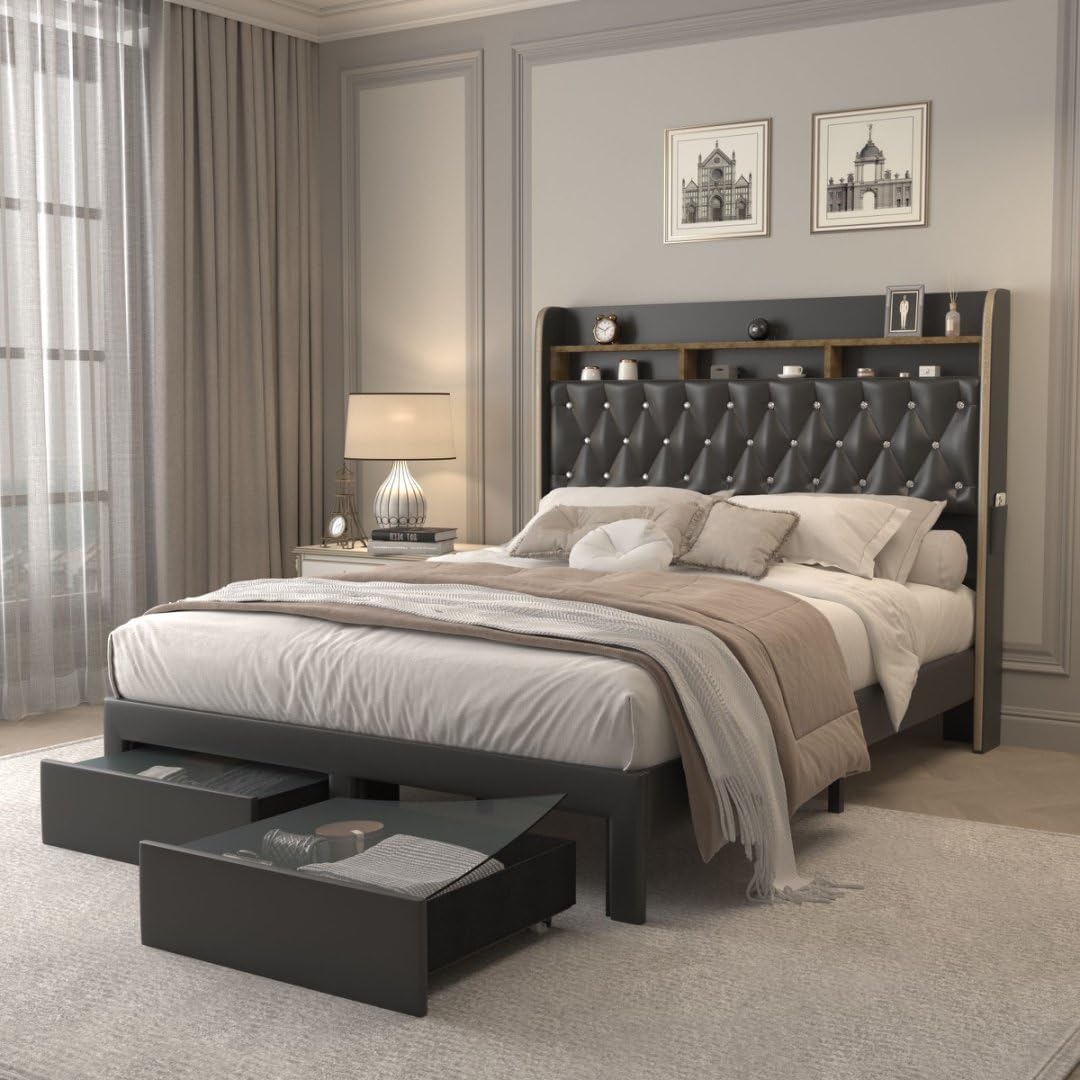 SIBEDS Aurora LED Bed Frame – Velvet Upholstered with Star Projector, Bluetooth Speakers & Storage Drawers