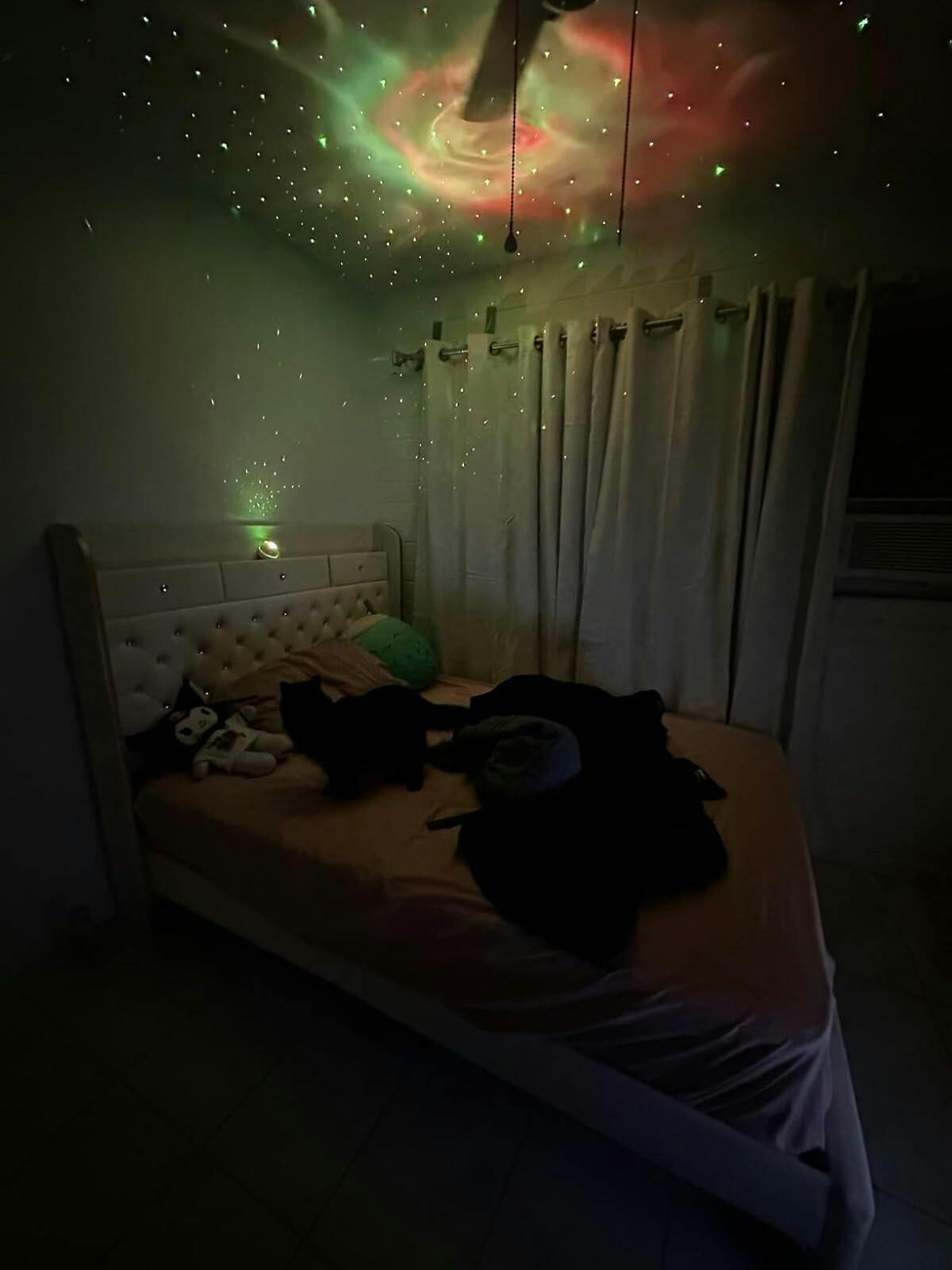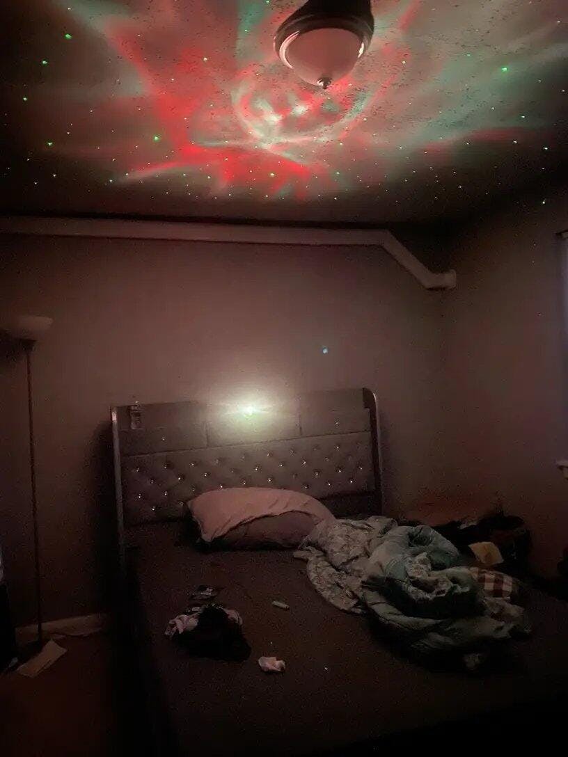 Transform your bedroom into a starry escape. Our built-in Galaxy Aurora Star Projector features vibrant red, blue, and green lights, rotating 360° for full-room coverage. Customize your experience with adjustable brightness, a timer function, and soothing white noise. Plus, enjoy music playback through the built-in speaker and charge your devices with the integrated USB port—all while relaxing on your LED-lit bed.